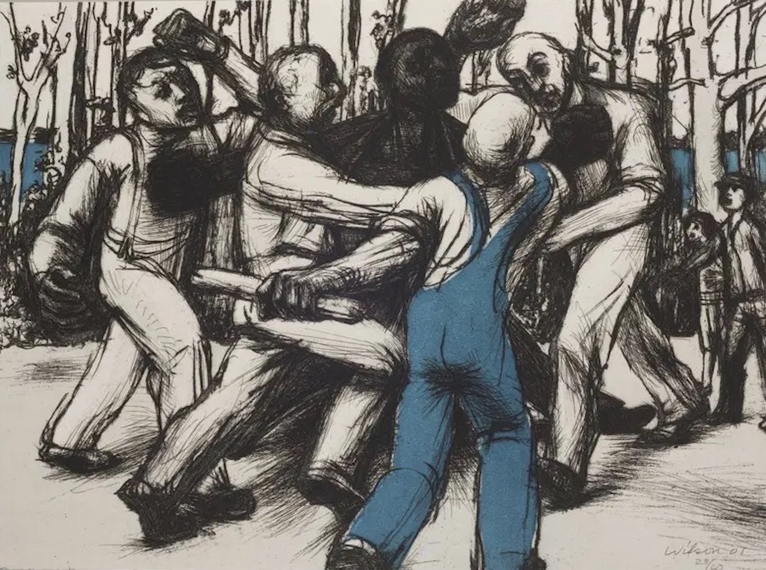 John Wilson (1922-2015) is een Zwarte Amerikaanse kunstenaar. Hij legde de raciale maatschappij waarin hij leefde vast. Het zal niet verwonderlijk zijn dat het werk van een Zwarte kunstenaar niet de erkenning heeft gekregen die het verdient. Dat er amper informatie over hem te vinden is. En dat ikzelf nog nooit van John Wilson had gehoord.
