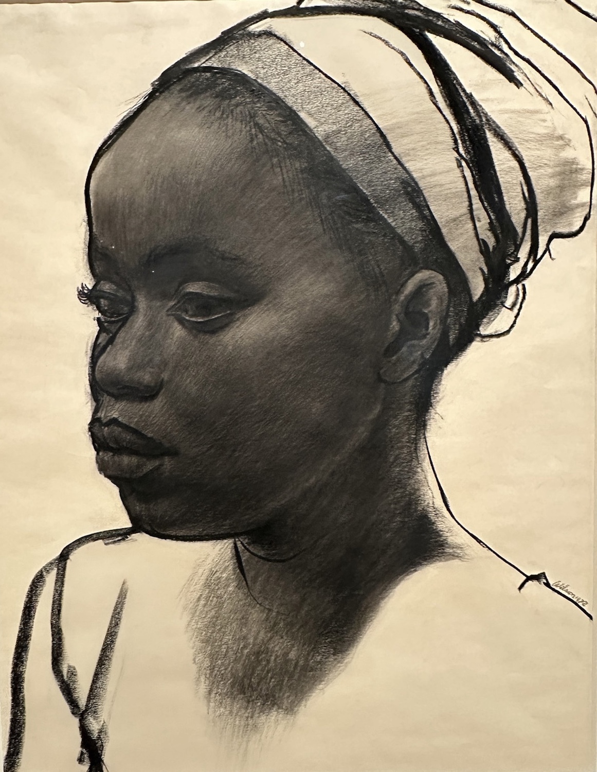 Waarom raakt deze litho mij zo diep? John Wilson maakte dit werk (Negro Woman) in 1952. Het beeld van de vrouw blijft op mijn netvlies hangen. Ik zie een gezicht en houding die geestkracht en intensiteit uitstralen. Tegelijk herken ik ook een sfeer van beklemming en spanning: ze staat onder druk. Het is geen blijhartige, maar gekwetste kracht en ze blijft op haar qui-vive.